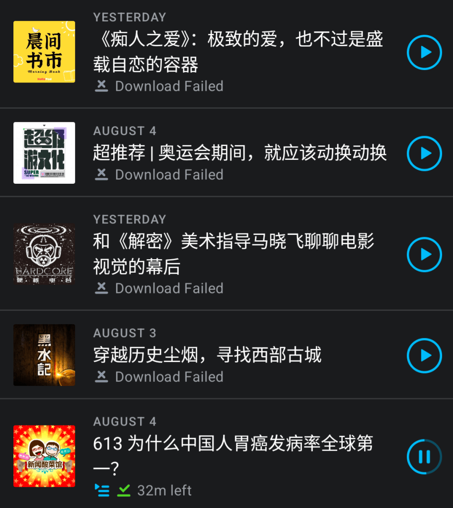 it appears I can no longer download or listen to any podcasts based in China.
