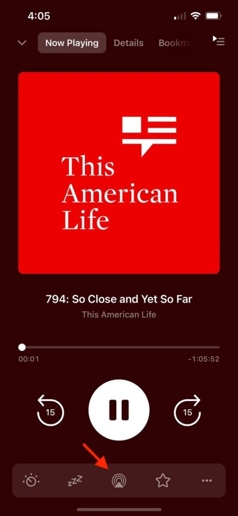 However, you can play podcasts over AirPlay from the player screen. Please see the attached screenshot.
