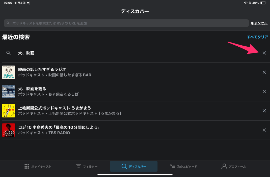 Thank you for supporting! I updated Pocket Casts to ver.7.92. But I still can’t delete these serch historys by close button. The situation has not changed from previous versions.😢