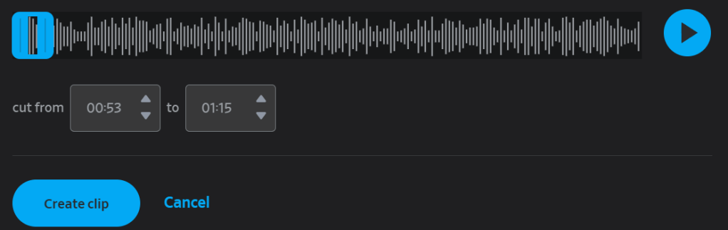 Play button to preview the clip we’re about to make. However, when we make a long clip (more than a few seconds, really) it can take a lot of time to play and re-play (and re-play!) to make sure we have the ending just right.