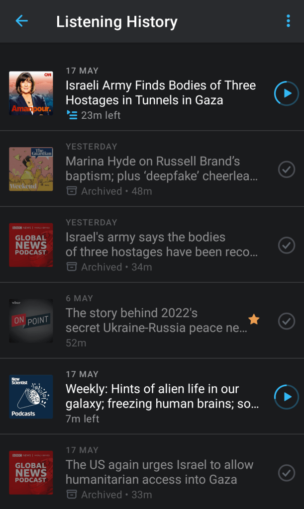I had a similar experience recently so I can empathise. I was listening with headphones on. Usually when I pause/switch off the headset the podcast player pauses. Well it didn’t or I may accidentally have pressed play and it played for another 20 or 30 minutes. No big deal except that I got a data warning from my provider and before ai knew it 3.2 GB data was used up, far more than the cumulative size of the 4 or 5 podcasts I played that day. I’ve included a screen grab from my listening history and data use for my phone settings.