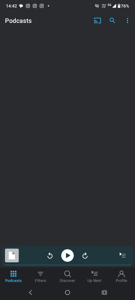 - Often, podcasts panel is completely blank – refresh doesn’t work, clearing app cache doesn’t work, logging in/out doesn’t work, reboot doesn’t work. Only solutions are either clear app data in android or reinstall app. Very frustrating.