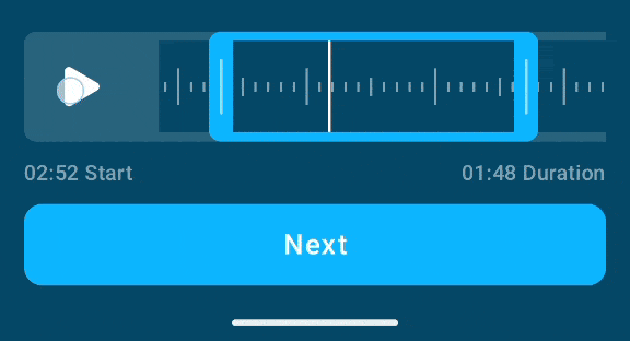 At least, it is technically draggable but it’s incredibly challenging to drag — you need to tap directly on the white line, otherwise you scroll left or right on the track, or you resize your cropping window, ruining the work you’ve done so far. If the “current position” bar is up against the beginning/end of the clip, it’s pretty much impossible to move without ruining your work.
